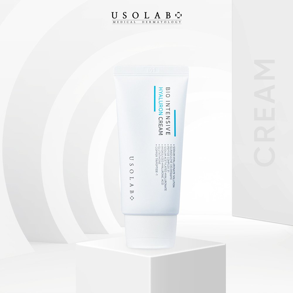 Usolab Bio Intensive Hyaluron Cream 50ml is a dermatologist-developed moisturizer designed to deliver deep hydration, restore the skin barrier, and comfort dryness. Featuring a blend of multi-weight Hyaluronic Acid (Sodium Hyaluronate, Hydrolyzed HA, and cross-linked HA), combined with Peptides, Vitamin B5, and Glutathione, this cream ensures long-lasting moisture retention while strengthening skin resilience.
